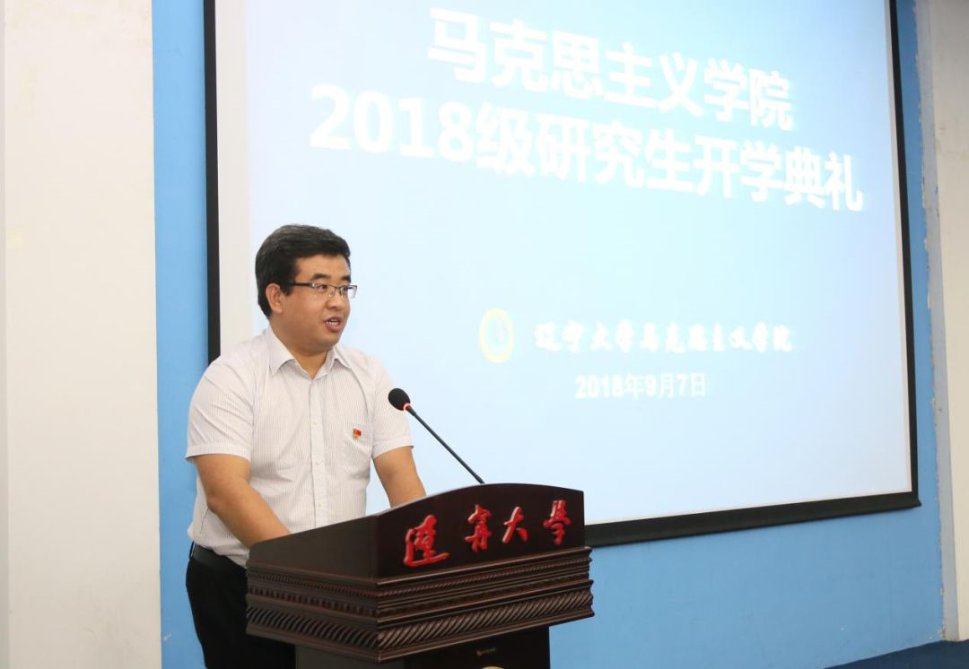 马克思主义学院党委书记、博士生导师房广顺教授为大家做了讲话,介绍了马克思主义学院的办学特色、教学理念等,让新生充分地了解了马克思主义学院这个大家庭,并在典礼的最后祝贺辽宁大学即将迎来70周年校庆。