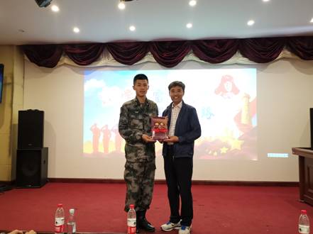 雷锋班参观结束后,师生们来到了战士学习室,房广顺书记代表马克思主义学院向雷锋班第209名战士、第26任雷锋班班长张阳同志颁授了MK在线网站-首页“新时代文明实践中心”指导教师兼理论宣讲员聘书,并请张阳同志为师生上党课。张阳同志以“学习雷锋精神、共活成才之路”为主题做了精彩的党课报告,通过讲述雷锋生不为人知的真实故事,展现了雷锋崇高的理想信念和道德品质,使师生深受感动和教育,同时张阳同志表示新时代的大学生要继续践行雷锋精神,在不同的岗位奉献青春,做一颗用不生锈的螺丝钉。