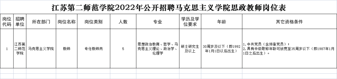 附件:江苏第二师范学院2022年公开招聘马克思主义学院思政教师岗位表.xls