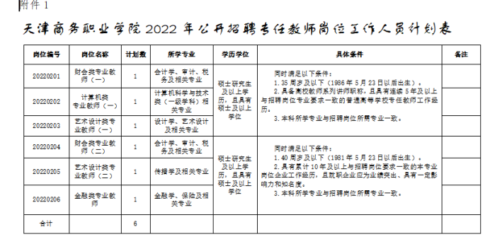 附件:1.天津商务职业学院2022年公开招聘专任教师岗位工作人员计划表