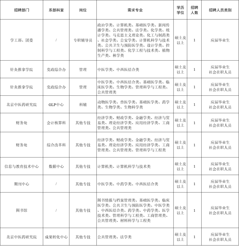 接收简历时间截至2022年5月16日。后续招聘岗位将在北京中医药大学招聘网动态更新,请及时关注。