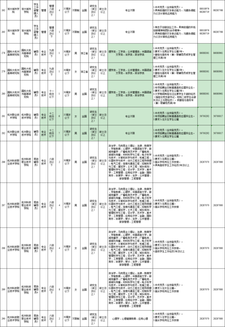 一、招聘单位和岗位 2022年市属事业单位共推出292个岗位,计划招聘工作人员371名。各招聘单位、岗位、人数、条件及其他情况详见《2022年杭州市市属事业单位统一公开招聘计划表》(详见附件)。谷贤教育提示更多高校招聘信息请关注公众号:高校人才招聘