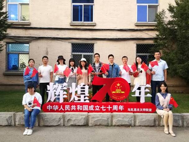 70年雄关漫道,70年初心不改。在伟大祖国迎来70年华诞之际,马克思主义学院党员师生结合“不忘初心、牢记使命”主题教育开展“我和国旗合张影”主题党日活动。学院师生用深情告白伟大祖国,共祝祖国实现新跨越,迈向新辉煌!