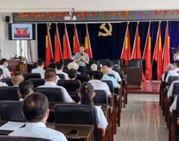 活动伊始,马克思主义学院师生与柏家沟镇班子成员开展图书和慰问品捐赠仪式,并认真进行座谈交流,了解柏家沟镇党建工作、经济发展工作和乡村振兴情况。座谈会后,马克思主义学院师生出席了柏家沟镇迎接中国共产党成立101周年暨“七一”表彰大会及为拥有50年党龄的老党员颁发勋章仪式。祁冰教授以“学习贯彻党的十九届六中全会精神”为宣讲主题,为全镇党员干部进行理论宣讲。祁冰教授围绕党的百年奋斗重大成就和历史经验,生动形象地讲解了党的十九届六中全会精神和习近平新时代中国特色社会主义思想,赢得了现场党员干部的阵阵掌声。柏家沟镇党员干部们表示,祁冰教授的宣讲生动具体、引人入胜,让与会人员对党的理论有了更加深刻的认识,对未来工作也有了更多的责任感和使命感。