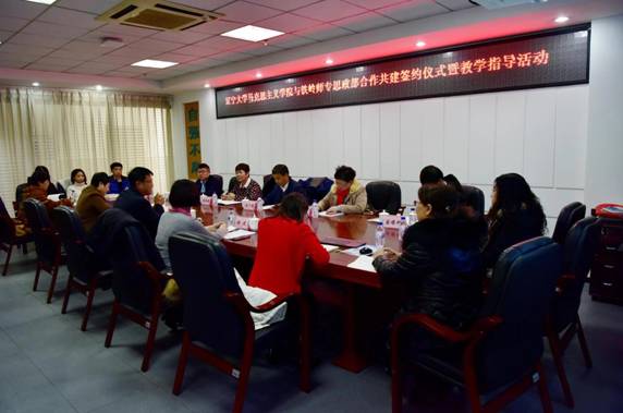 为深入贯彻落实辽宁省人民政府“重实干、强执行、抓落实”专项行动实施意见精神,加快推进辽宁省“双一流”建设,进一步拓展和深化马克思主义理论“学科立地”计划,更好地为辽西北地区的政治建设、党的建设和意识形态建设提供理论指导,助推辽西北地区脱贫攻坚工作。马克思主义学院于2019年1月3日赴铁岭师范高等专科学校开展合作共建活动。